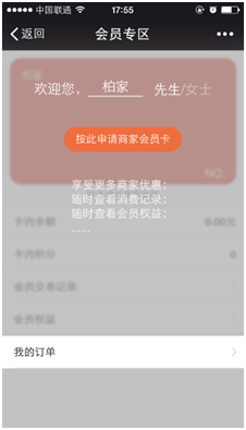 客戶(hù)點(diǎn)開(kāi)公眾號(hào)下的會(huì)員專(zhuān)區(qū),可以申請(qǐng)成為,店鋪會(huì)員,享受會(huì)員優(yōu)惠,并且查看自己的會(huì)員信息。