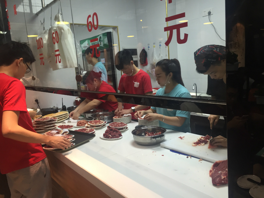 八合里海記汕頭牛肉火鍋,非常出名的連鎖牛肉火鍋店,總部在深圳,在深圳目前有13家分店,這一家位于惠州麥地,生意火爆。八合里海記汕頭牛肉火鍋連鎖店,使用聚食匯餐飲管理系統中的連鎖版本,由總部統一管理,惠州麥地店這家使用無線點菜寶下單,廚房和明檔配置出單打印機,前臺使用觸摸屏一體機收銀,提高了餐廳的小類,提高了翻臺率。